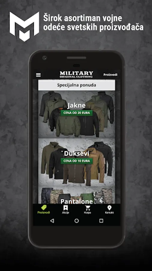 Army Shop MMOC se bavi uvozom i prodajom originalne strane vojne opreme, kao i opreme od renomiranih svetskih proizvodjača militarije po najpovoljnijim cenama u Srbiji. Očekujemo vas u našem prodajnom prostoru od 300 kvadratnih metara, gde će vas dočekati prijatno i stručno osoblje. U našem asortimanu možete pronaći opremu koja je pogodna za lov, ribolov, paninarenje, kampovanje, airsoft itd. O usluzi, dobrim cenama i najkvalitetnijoj opremi svedoče preko 10.000 zadovoljnih kupaca iz zemlje i okruženja. Posetite nas i uverite se!