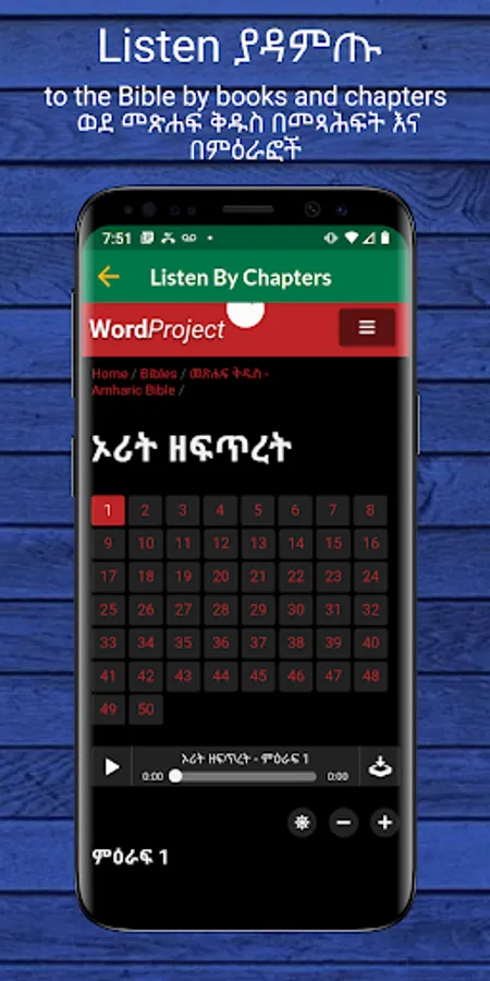 - መጽሐፍ ቅዱስን በምዕራፍ ወይም በተሟላ መጽሐፍ ያዳምጡ