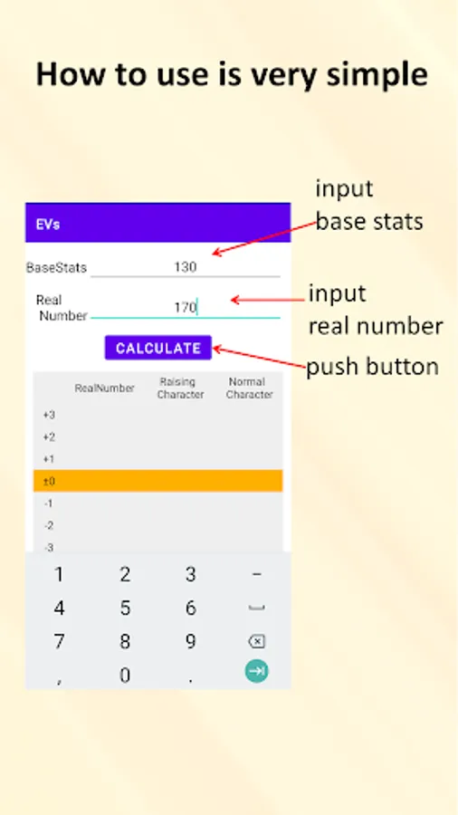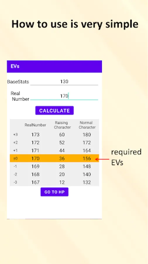 Just enter the base stats and the real values you want to acquire, you will immediately know the required effort values.