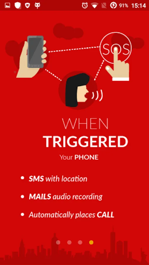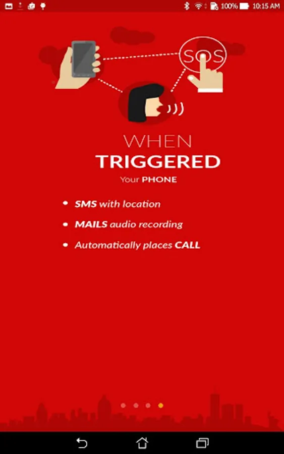 attack, the victim’s location and recording can be immediately sent without unlocking the phone (just by pressing the power button ). It can also be used in case of any sudden attack or thug or when there threat to personal safety as one can just silently put his hand in pocket and press the power button to send out alerts .