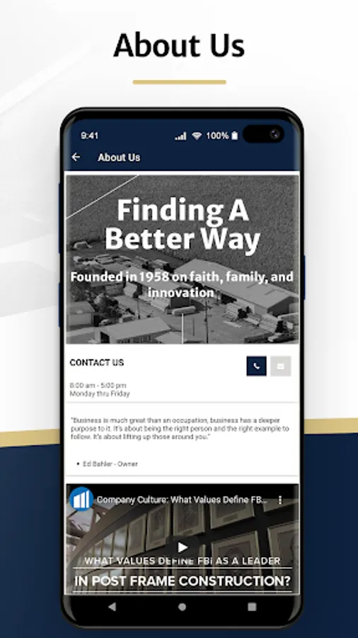 At FBi Buildings we build with confidence and unmatched quality. Get all the support you need in our Bahler Group app with easy access to career opportunities, our customized product learning center, client resources, blog articles, and more.