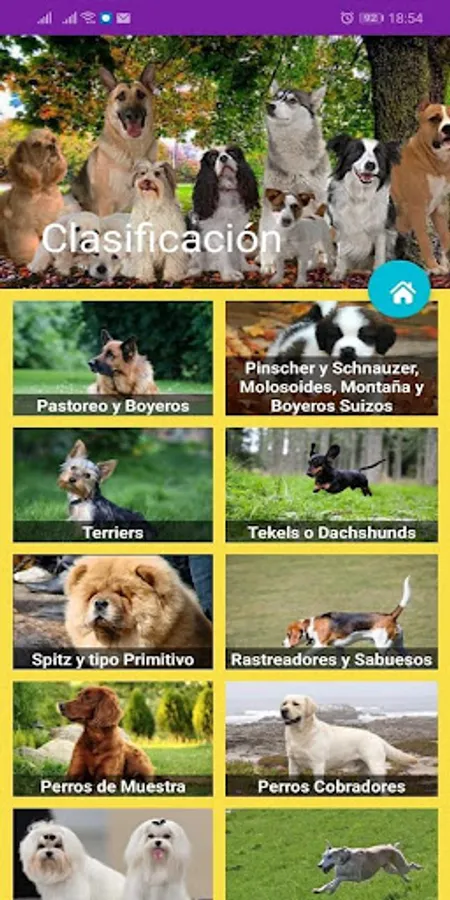 The application contains information on the existing dog groups according to the FCI, feeding, care, weather and characteristics about the breed.