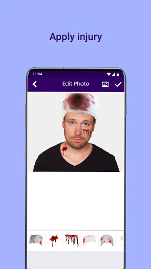 Bored by clicking ordinary selfies and filter overlay??? Fight Injury Face Photo Editor app is the right place for you. Fight Injury Face Photo Editor app is one of the more creative and fun photo-editing Android apps. Transform your still images into thrilling and astonishing fight injury face with bruises, burning, stitches, etc and leave your parents and friends awestruck. Fight Injury Face Photo Editor app has an incredible collection of face injury stickers that look realistic like photo editor stitch, amputee, Injury wounds, bruise,burning fighting, injured, Linda body, stitch clip photo.
