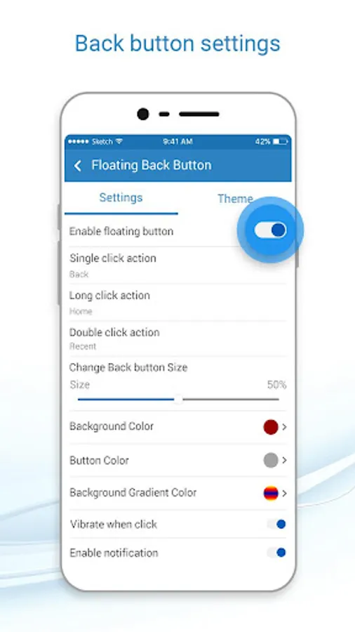 - Turn on the toggle to access Floating Back Button app.