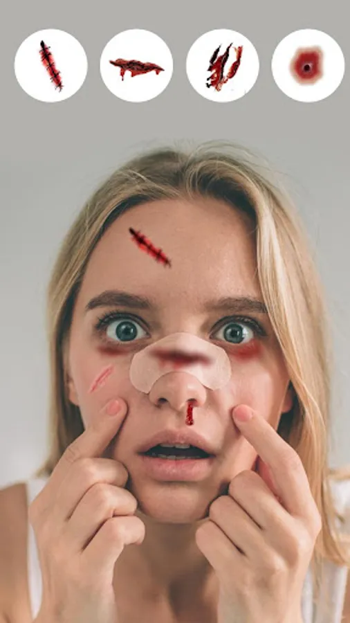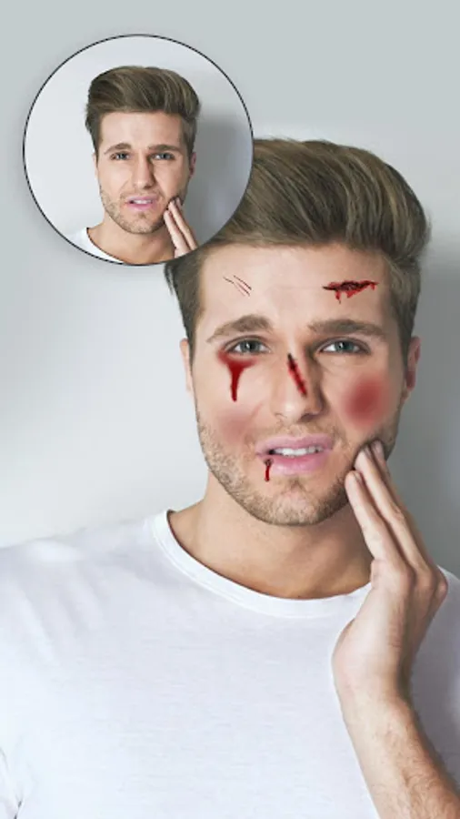 Injuries and scars leave people awestruck and worried. Invoke jaw-dropping fake injury effects to your photo with the aid of the Injury on Face Photo Maker app.