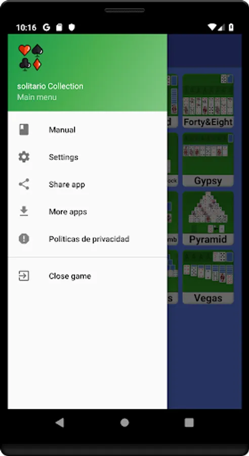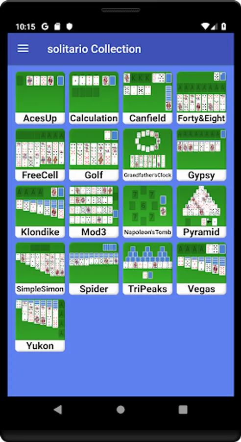Enjoy a collection of classic solitaire card games, spider, golf among others.