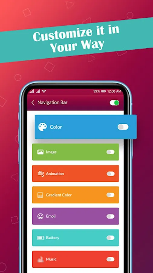 Navigation Bar: Back, Home, Recent Button is a new-age app which is absolutely free to install and operate. Navigation Bar Customization Simple to Attractive app is easy to install and offers an easy-to-use functionality. Navigation Bar Customization Simple to Attractive app has professional and latest material design and carries out click quick executions. Navigation Bar Customization Simple to Attractive app supports all screen resolutions of mobile and tablet devices and is a lightweight application, will no drain the device memory, battery, other resources.