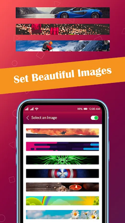 Select the face of the navigation bar either from the various images presented by the app or browse any image from phone memory.