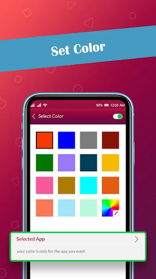 Select the color and then select the apps in which the selected color navigation bar should appear.