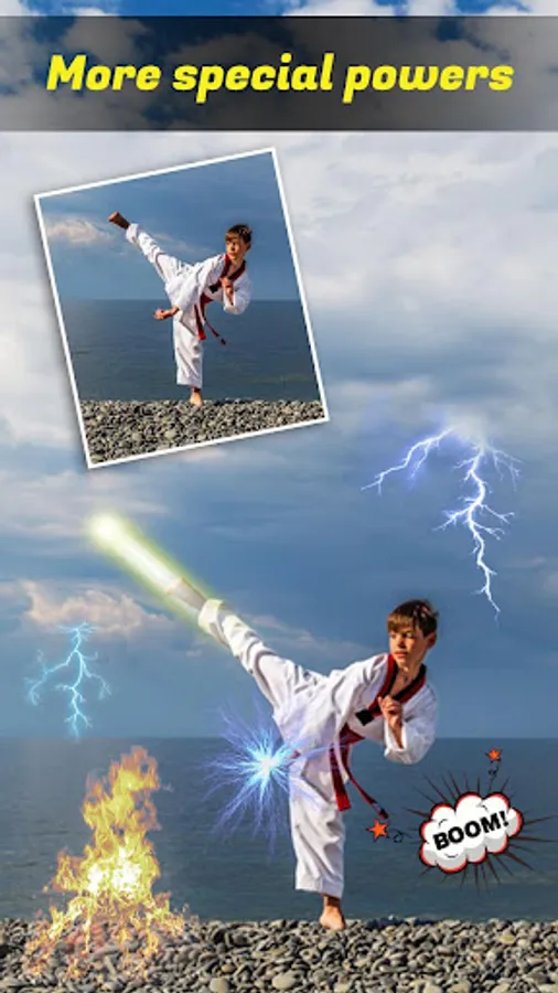 Super Power Effects Photo FX app carry out instant click executions and is effective in saving the edits made. Super Power Effects Photo FX app has a vivid and prolific collection of innumerable super power effects that elongate the feel of the super power in the super power effect photo montage. Super Power Effects Photo FX app is a full-fledged photo-editing app for the creation of immensely thrilling and creative super power effects photo montage.