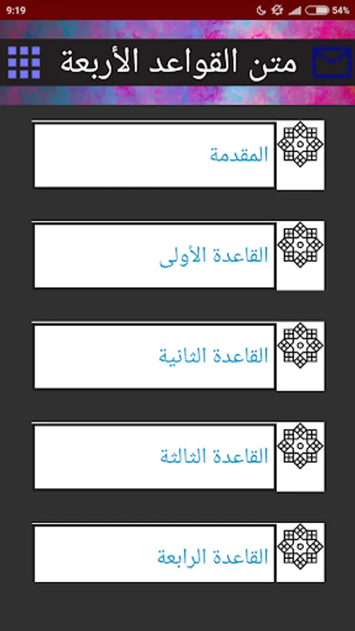 The four-board system is an application that discusses four important points in doctrine, all derived from a recognized argument taken from the Quran and Sunnah. You can make this app educational material because it is equipped with mp3 files to listen