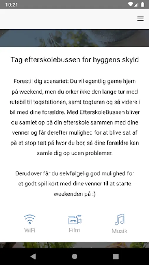 The after-school bus runs you safely to and from your after-school. With the app you can easily and safely book bus tickets - both for yourself and for friends and / or extra luggage you need to bring along on the trip.