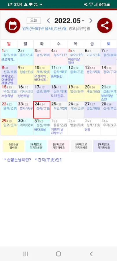 또한 손있는날도 표기하여, 액운을 피할 수 있습니다.