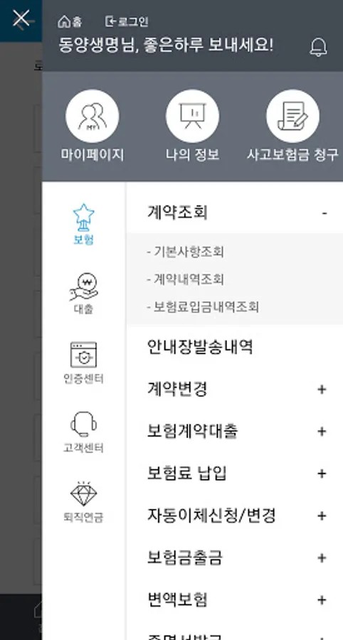 Dongyang Life Insurance, a global financial leader that realizes dreams and hopes by creating the best value, provides a dedicated mobile window service for smartphones.