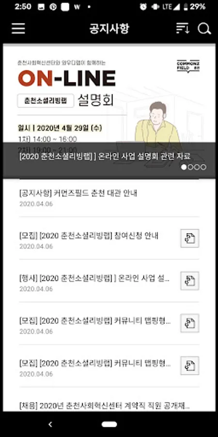 Through the Commonsfield Chuncheon app, you can quickly access the news of social innovators in the community.