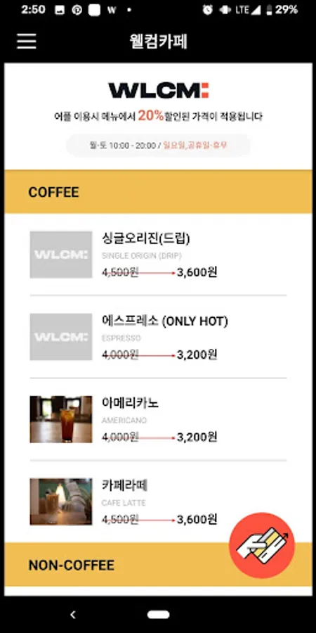 [Get discounts from Welcome Cafe through the app!]