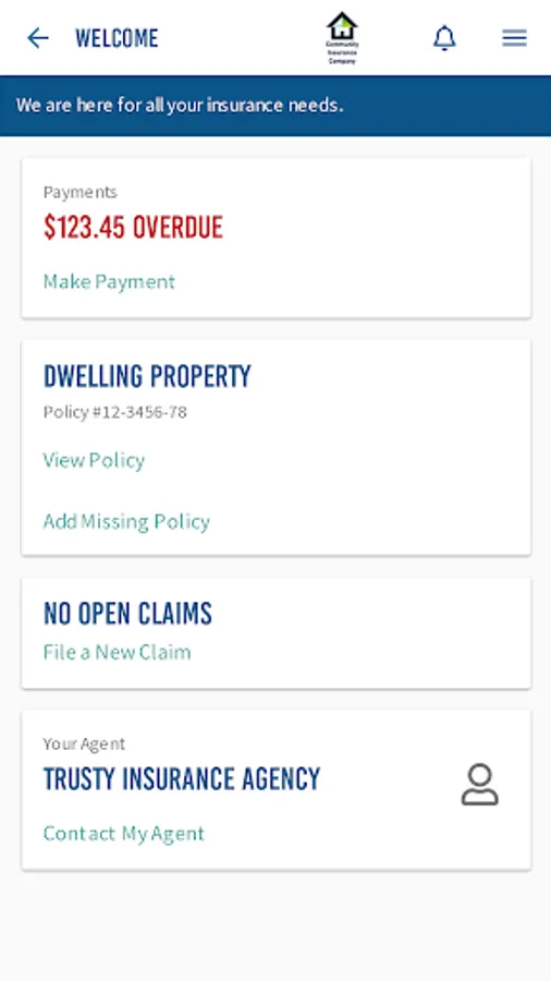 * Ability to upload photos, contact your agent or the Community Insurance Company