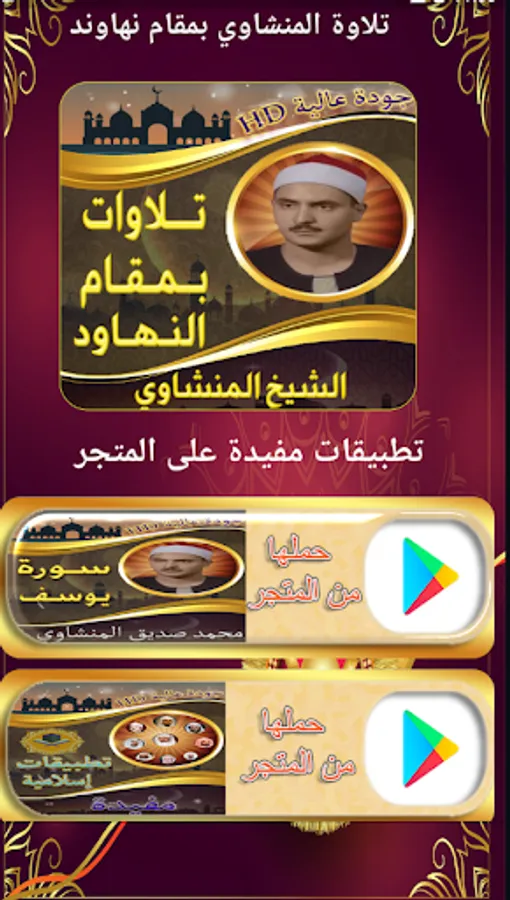An application that includes Nahawandiat by Sheikh Muhammad Siddiq Al-Minshawi without the net, with the most beautiful voice and the purest quality.