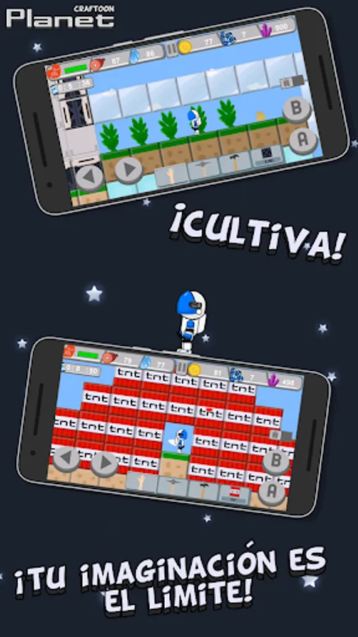 Do you have what it takes to be an astronaut of the PEE? Explore the different planets, each with its own characteristics, Mina! Look for minerals to build, Craftea! you can create more than 30 available blocks, among which are block cloners, generators, ovens, mincubs, crops and many more! Build! create what you want from a simple room to a complete moon base, survive! confront the different dangers of each planet and show what you are worth.