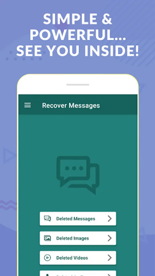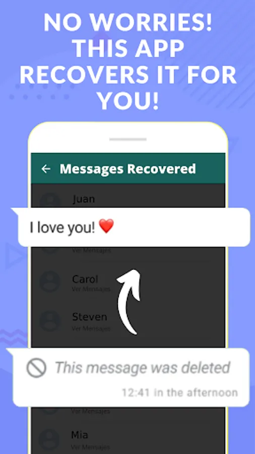 Recover Deleted Messages app helps you recover, view and view deleted messages, but not only that... it also helps you recover photos, audio or voice notes and videos that have been sent to you and then deleted.