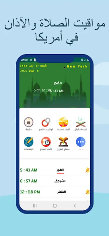 Prayer times and Azan in America is one of the best Islamic applications for mobile phones, as it contains everything a Muslim needs, starting from prayer times and Azan, reading and listening to the Noble Qur’an to morning and evening remembrances, Qibla direction and Hijri date...