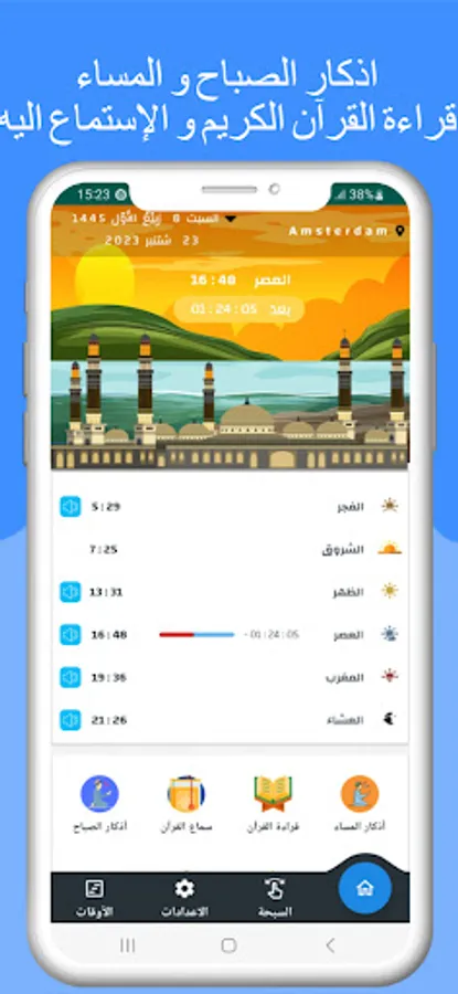 “Prayer times in the Netherlands” is a simple application that contains many features and characteristics, including accurate prayer times, morning and evening remembrances, listening and reading the Holy Quran, Hijri date, Qibla, Hajj, fasting...