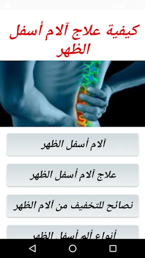 Therefore we will try in this application to identify the causes and types of back pain with the treatment and symptoms that call for a doctor.