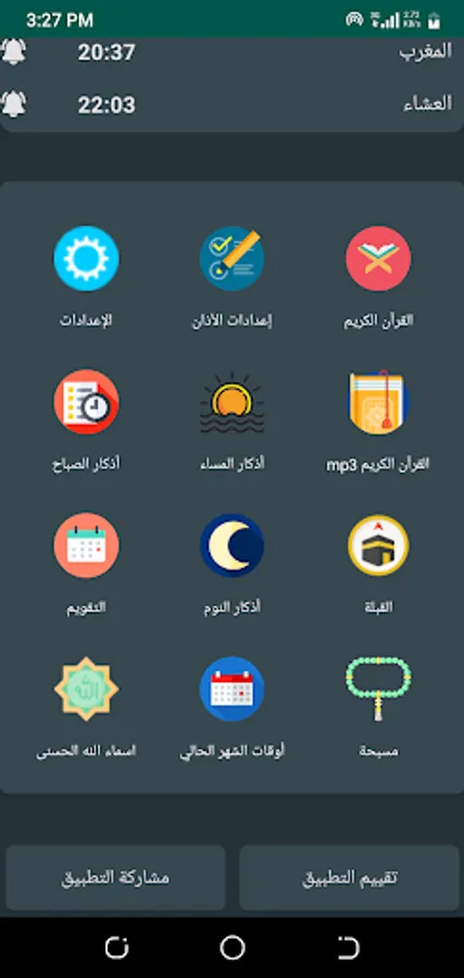 Alerts for prayer times and the call to prayer, with the possibility of activating or canceling it