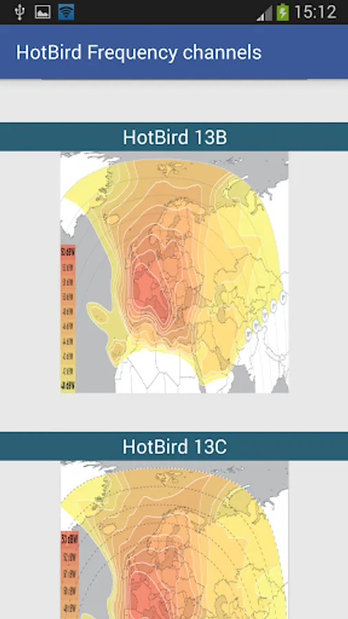 All frequencies in the following satellites in the same orbit 13 degrees East: Hotbird 13B / HotBird 13C / HotBird 13D.