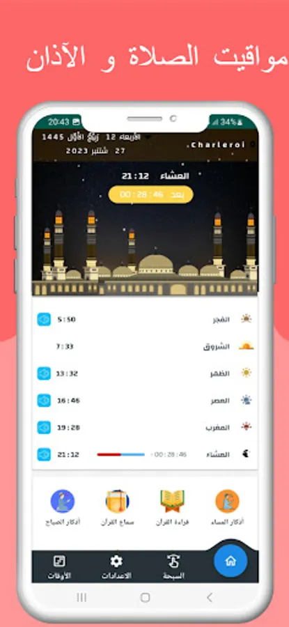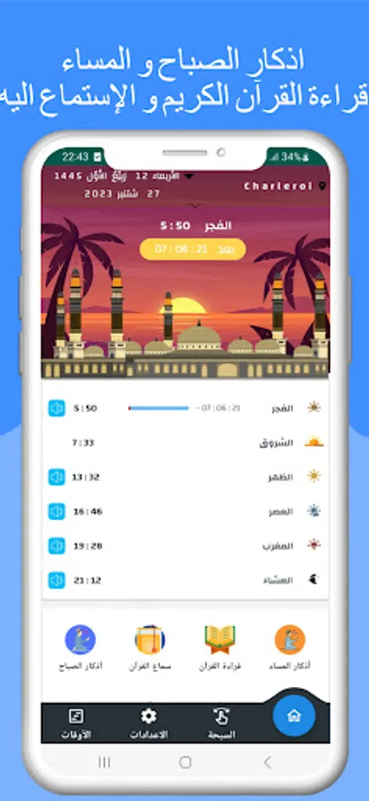 “Prayer times in Belgium” is a simple application that contains many features and characteristics, including accurate prayer times, morning and evening remembrances, listening and reading the Holy Quran, Hijri date, Qibla, Hajj, fasting...