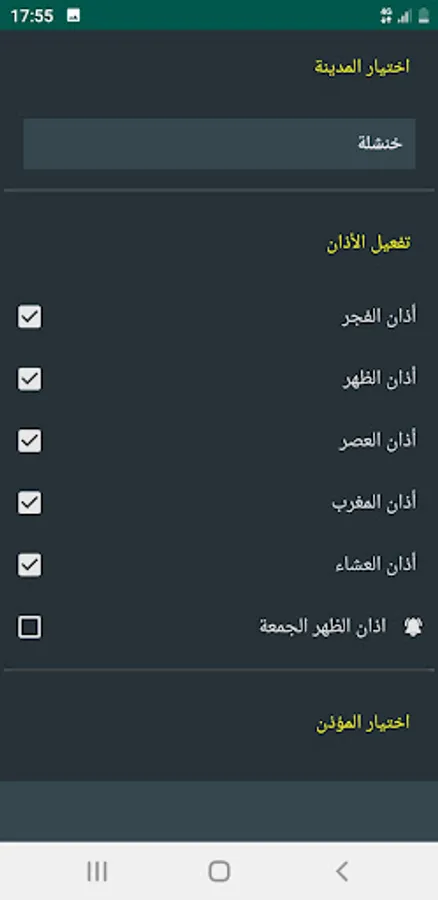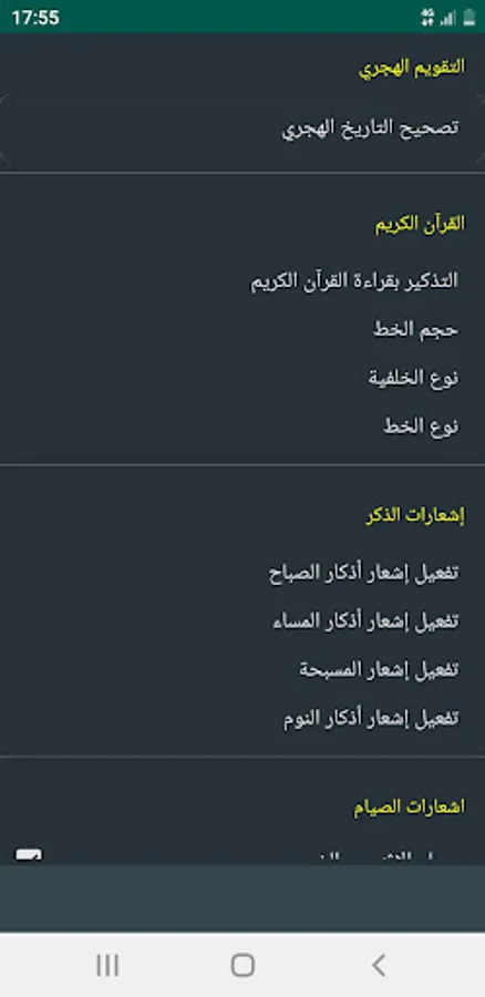 Alerts for prayer times and the call to prayer with the ability to activate or cancel it