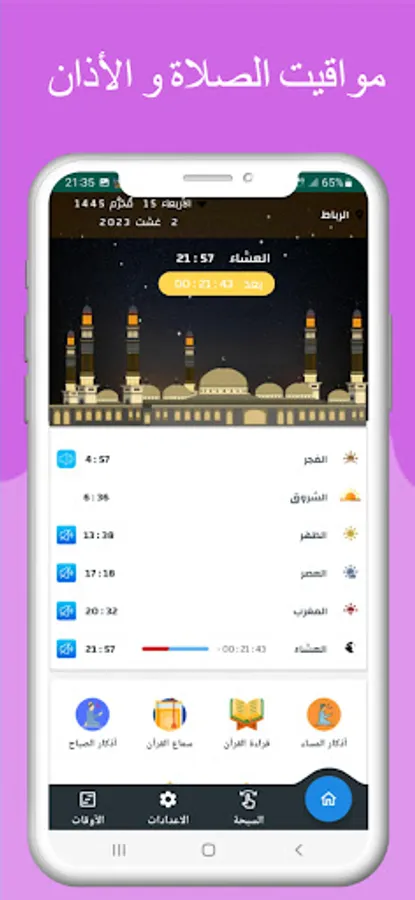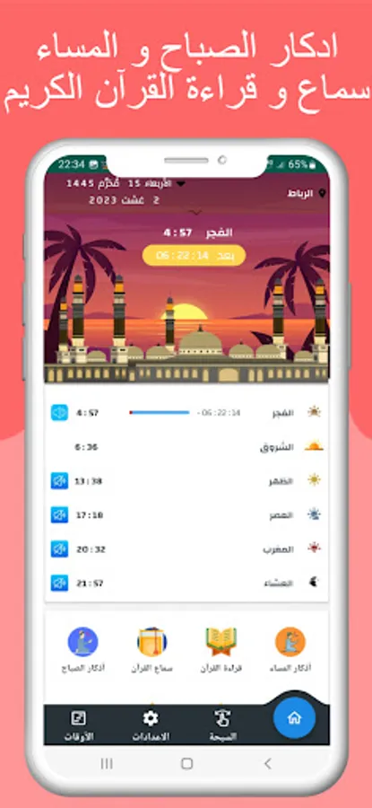 “Prayer times in Morocco” is a simple application that contains many features and characteristics, including accurate prayer times according to the Ministry of Endowments and Islamic Affairs in the Kingdom, morning and evening remembrances, listening and reading the Holy Quran, Hijri date, Qibla, Hajj, fasting...