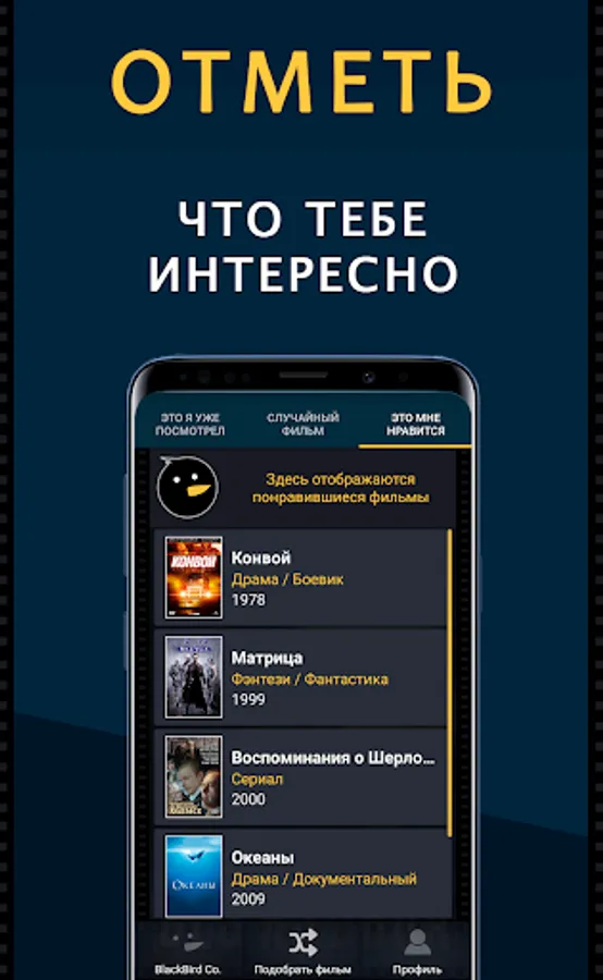- Ability to postpone the film for the future, as well as mark it as already viewed