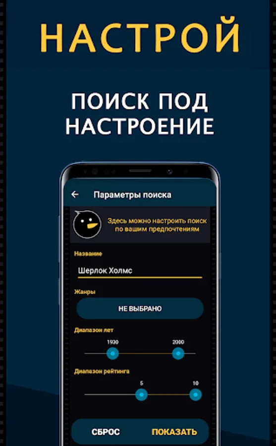 Do you want to spend a lot of time looking for an interesting movie? Then this app is for you! Over 30,000 different films and TV shows have been collected here. Both ordinary and animated. In just a few seconds you can find a movie to suit your mood!