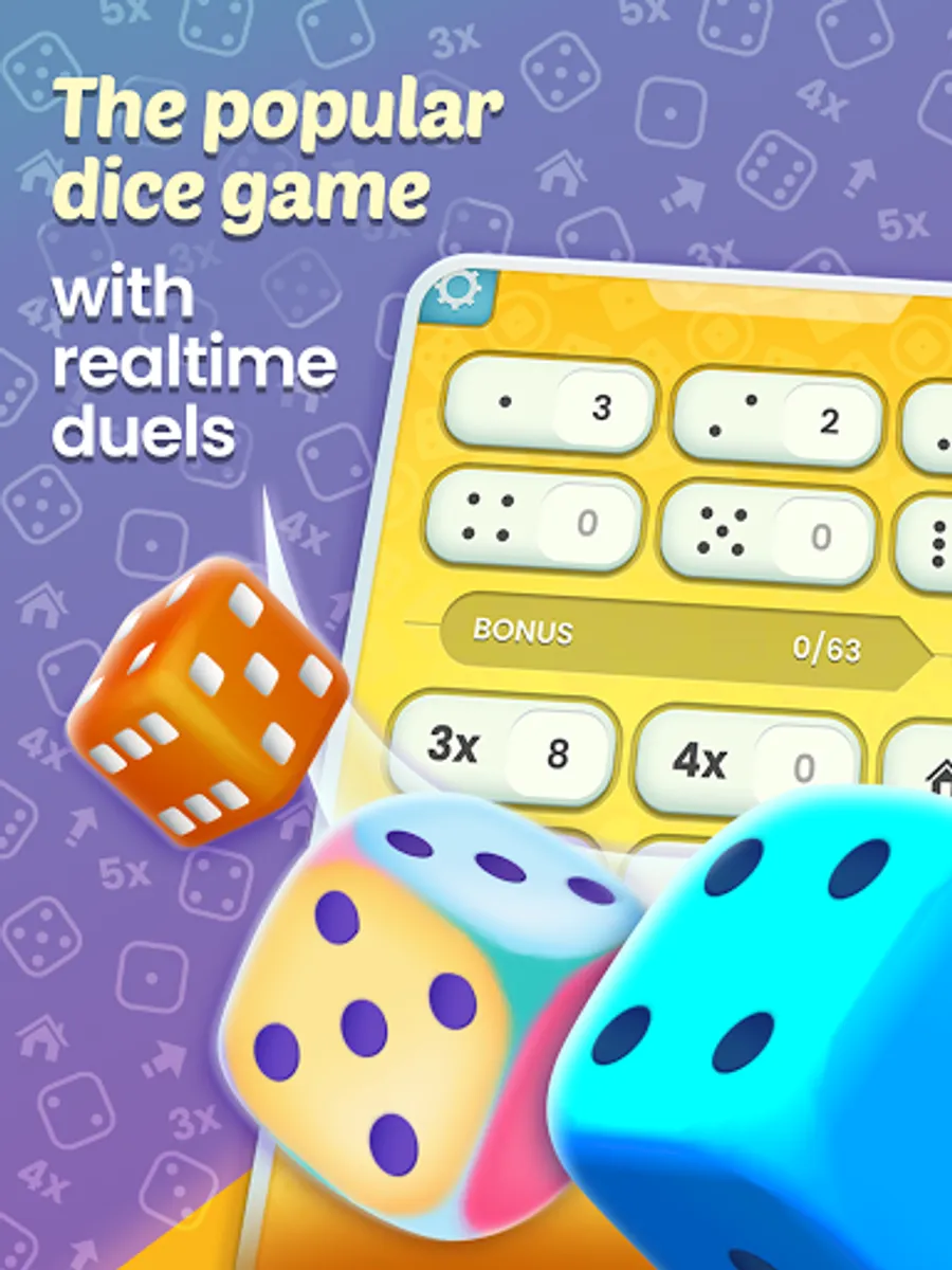You may know this game of luck and skill by another name (e.g., yacht). It is the Poker Dice-style game we all know and love with five dice and 13 rounds in which you try to achieve the highest score possible by scoring once into each of the 13 available categories (e.g., 3-of-a-kind, straights, full house). Yet, with its realistic dice and unique combination of features, we believe it deserves a name of its own: Golden Roll. This is how we set the gold standard in realtime multiplayer yatzy: