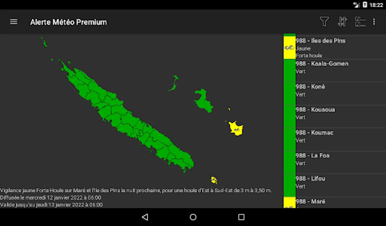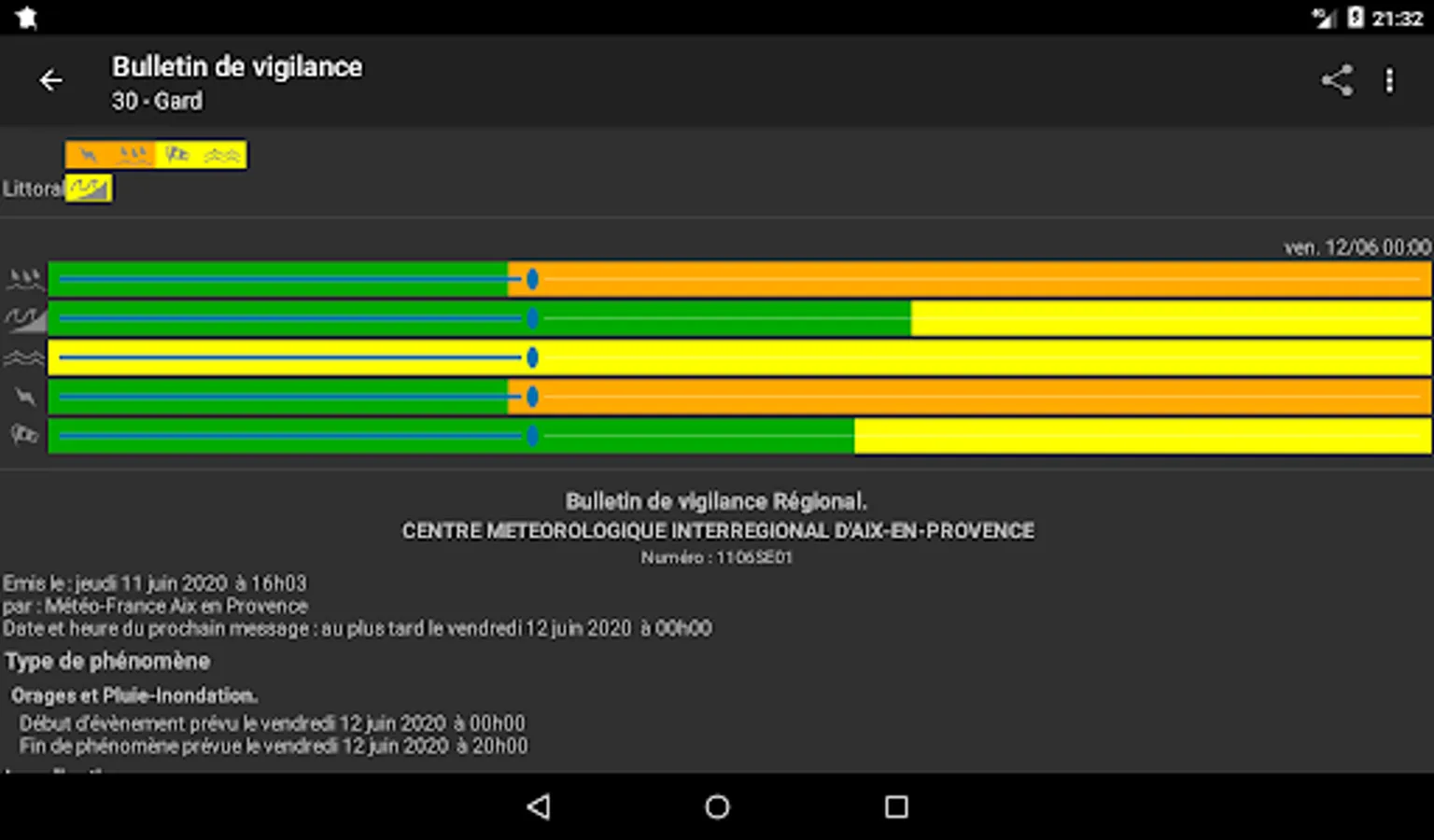 • Offline consultation of vigilance bulletins by clicking on the map or in the list.