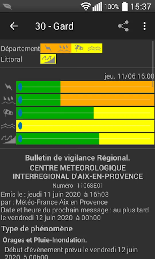 • Offline consultation of vigilance bulletins by clicking on the map or in the list.