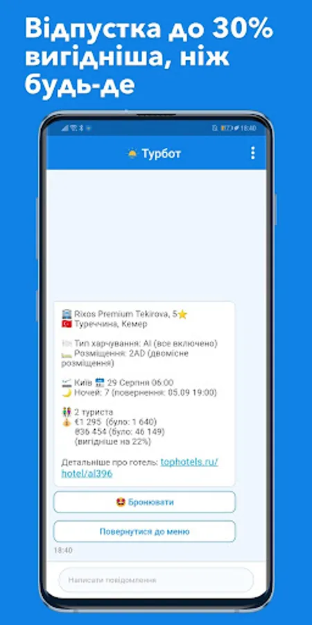 I can send the best deals of package tours to Turkey, Egypt or other countries (Tunisia, UAE, Spain, etc.), depending on which city of Ukraine you are in.