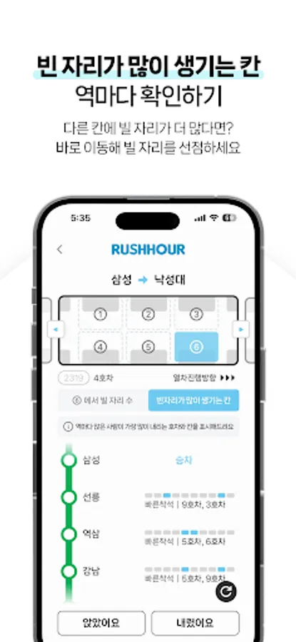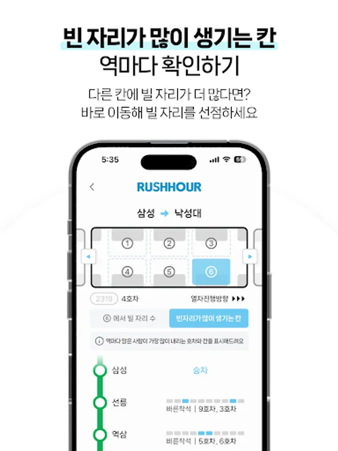 Rush Hour AI will show you which slots will have more vacancies. Go to the corresponding compartment and wait!