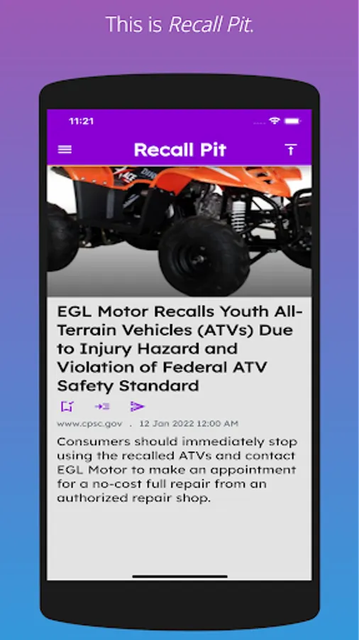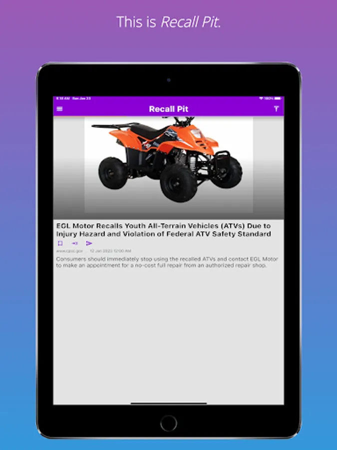 Recall Pit is the place where recalled products of all types from the FDA, CPSC, and USDA are located at the tips of your fingers. Items are formatted such that one can simply scroll through products that have been recalled.