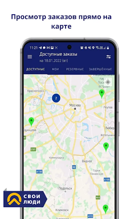 Enter your address and the application will offer you all the upcoming orders and vacancies on the map or list!