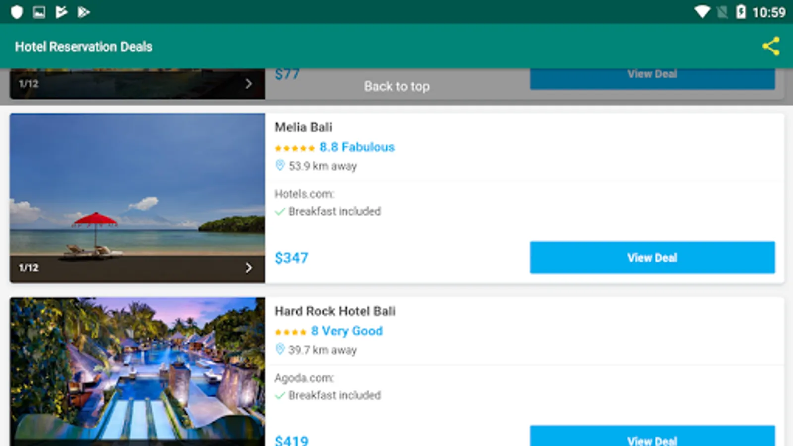The Hotel Reservation Deals online hotel booking application offers you the best hotel deals that save you up to 78% even for some last-minute hotel room reservations, whether you're booking cheap hotels or luxury hotels. 5 stars in any city, country or anywhere in the world and includes cities such as Abu Dhabi, Berlin, Canberra, Dubai, Frankfurt, Istanbul to London, Mecca, Melbourne, Moscow, New York, Paris, Sydney, Shanghai, Tokyo, Washington , Xuzhou, Yogyakarta and Zurich, etc. or tourist places like Phuket in Thailand, Bali in Indonesia, the Maldives or the wonderful beaches of Bahamas or Mauritius or the Virgin Islands, etc.