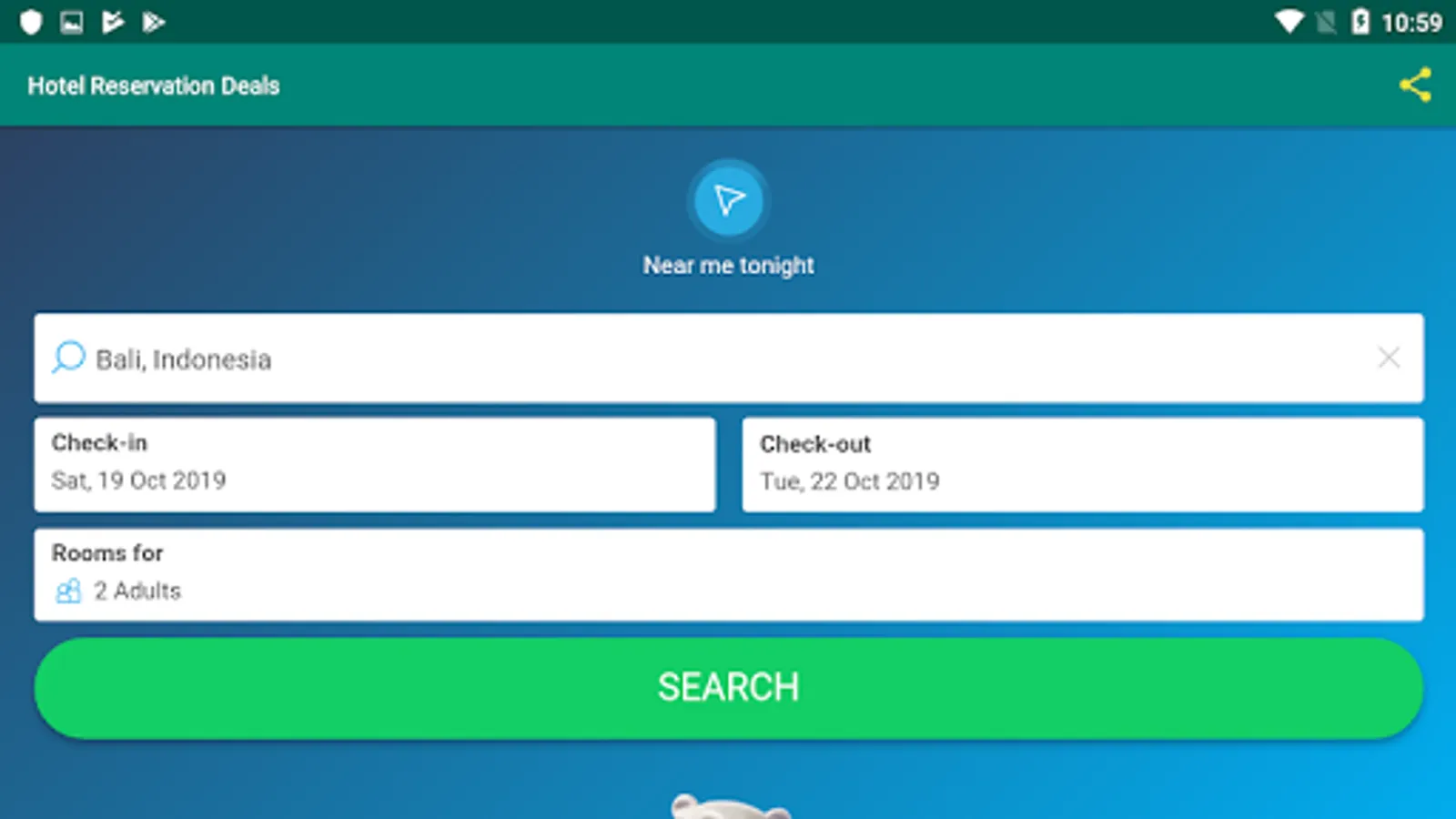 To get the best hotel rates anywhere at any time, simply search by location, date and number of guests and the Hotel Reservation Deals online hotel reservation mobile app will quickly find you the best hotel discounts at the places you choose .
