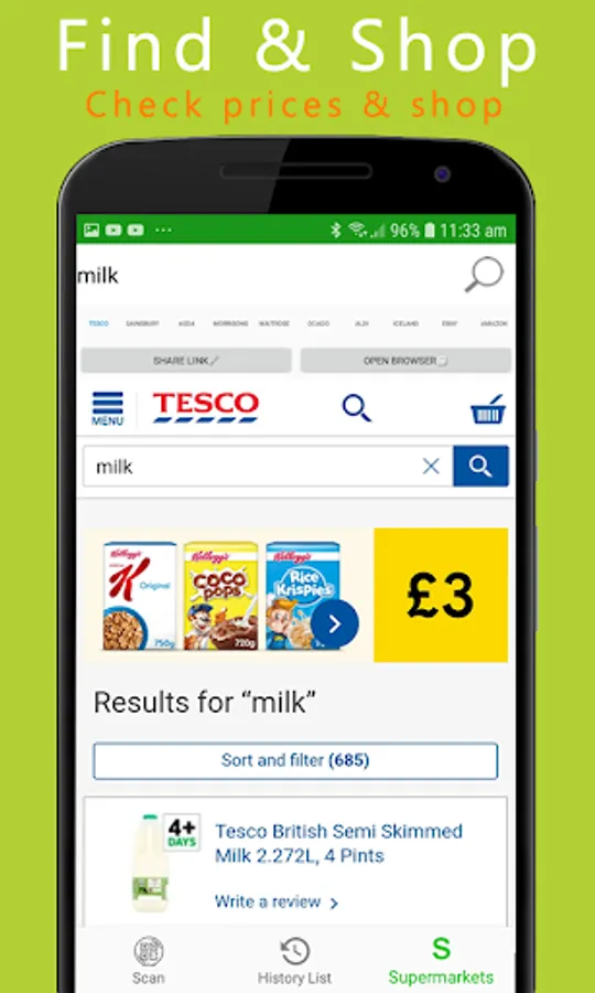Scan or search products, compare prices and shop the results and ensure you get the best value on every shop.