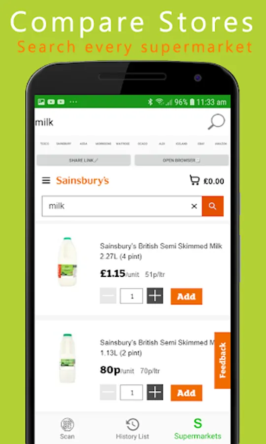 The compare supermarket prices app is a secret weapon for the smart shopper - search for items or scan barcodes to make sure you have all the information you need! Compare product details, check prices and read reviews. Save money your grocery shop today! No Ads - Works in US, UK, CA and EU!