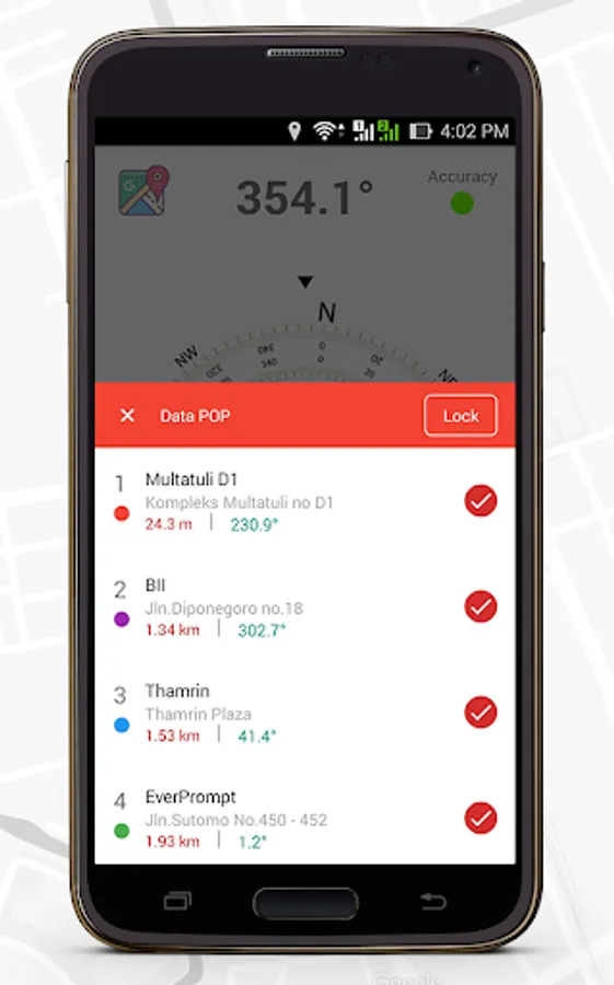 Application to know possible direction of defined places from user position in 360° direction. This app requires an android device that supports compass and GPS feature in order to use. Places position can be loaded from your own customized data in excel file.