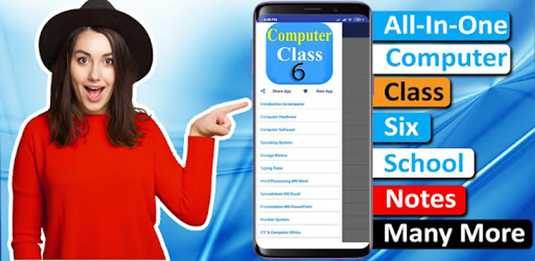 This is a notebook for computer class 6, you can find all the notes you want for your class on this app. Computer notes are written in simple English you can easily understand it. This app is specially designed for school students and it is very easy to use.