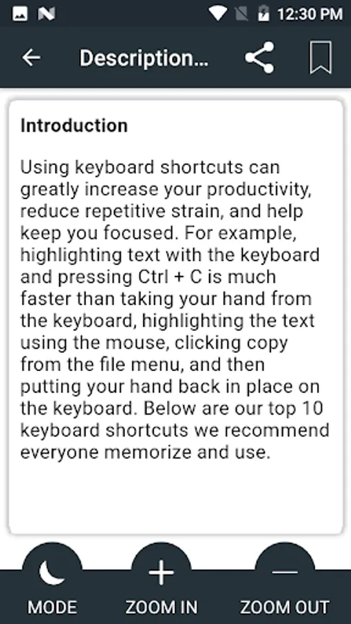 The present app on computer concepts has been divided into chapters namely Introduction to Computer, Introduction to GUI Based Operating System, Elements of Word Processing, Spreadsheet, Introduction to Internet, WWW Web Browser, Communication Collaboration and Making Small Presentations and Digital Financial Services along with extra effects section covering Computer Abbreviations, Computer Glossary and Model Practice Sets.