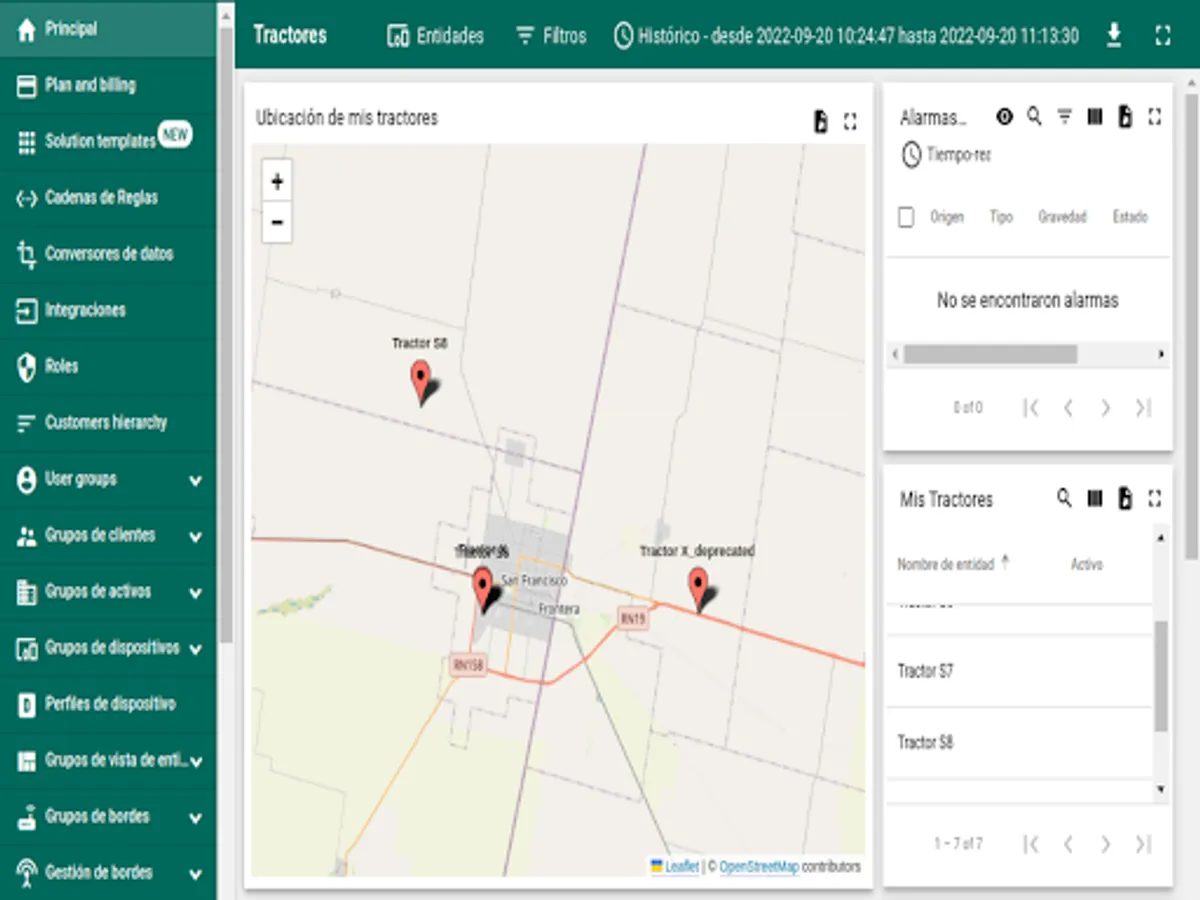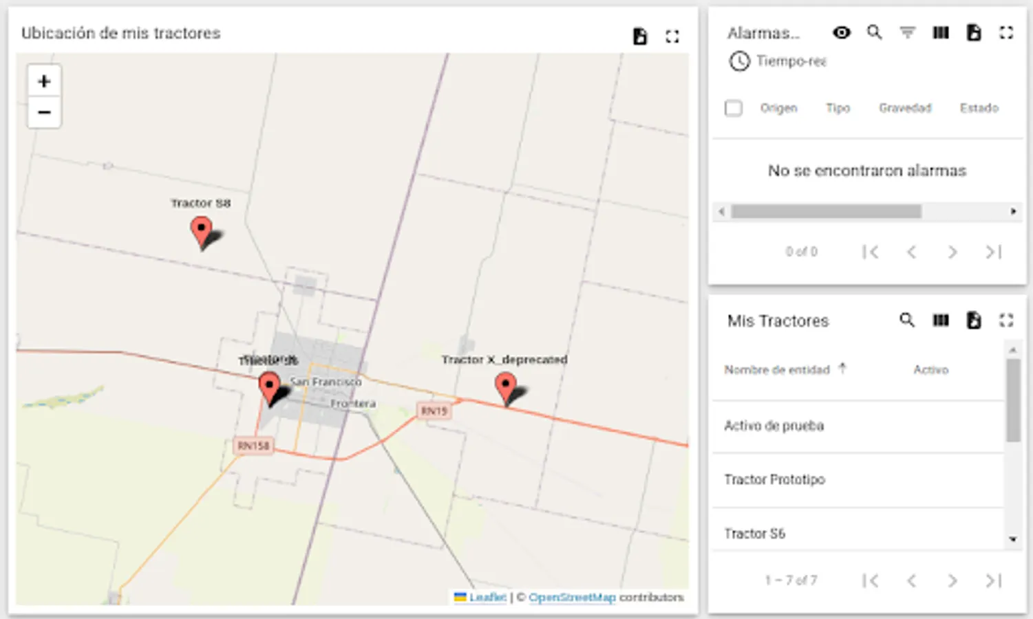 - Telemetry of tractor parameters in real time and history: rpm, fuel level, temperature