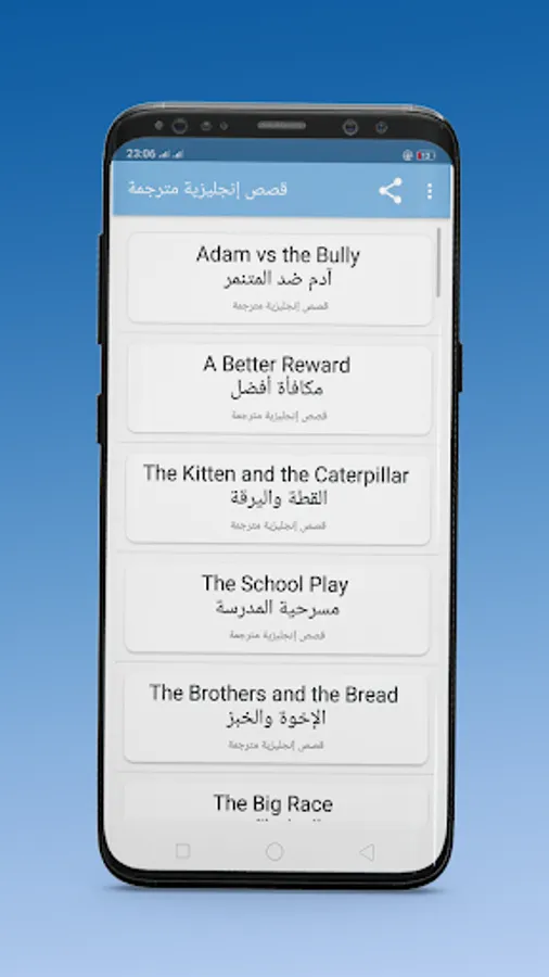 The application provides you with: completely new and interesting stories in English with their translation into Arabic by voice without the Internet in an excellent educational way, and English words on a daily basis to enrich your linguistic dictionary.